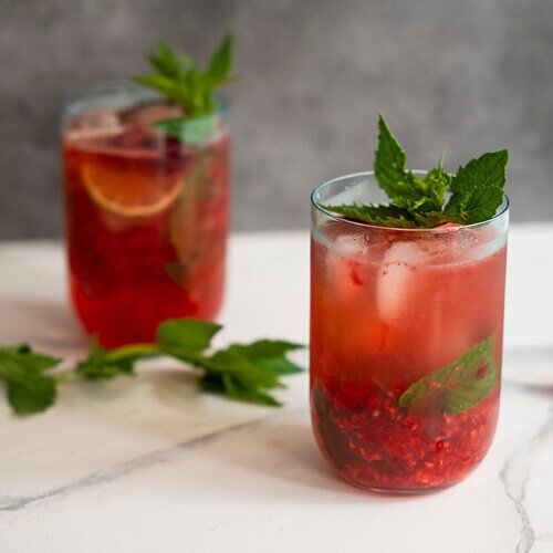Ein Mojito der besonderen Art: Süße Himbeeren, frische Minze und spritzige Limette vereinen sich mit weißem Rum zu einem erfrischenden Cocktailklassiker in fruchtiger Variante. Perfekt für schöne Sommerabende oder als Highlight auf jeder Party.