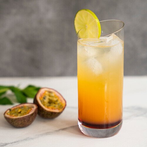 Tropischer Genuss im Glas! Ein exotischer Drink, der sofort Urlaubsfeeling aufkommen lässt: Fruchtiger Passionsfruchtsaft trifft auf cremiges Kokoswasser – dieser Cocktail sorgt garantiert für gute Laune.