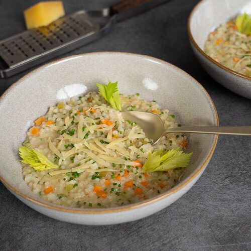 Perlgraupen-Risotto mit Wurzelgemüse – ein harmonisches Zusammenspiel aus cremiger Konsistenz und fein abgestimmten Aromen, das für echten Genuss sorgt.