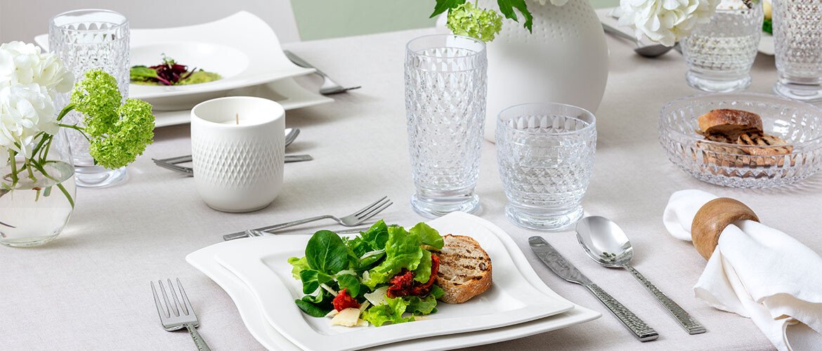 Zaubern Sie mit den Kristallgläsern und anderem Villeroy-&-Boch-Geschirr aus unserem Shop ein Tischbild, das zum Verweilen und Zugreifen einlädt.