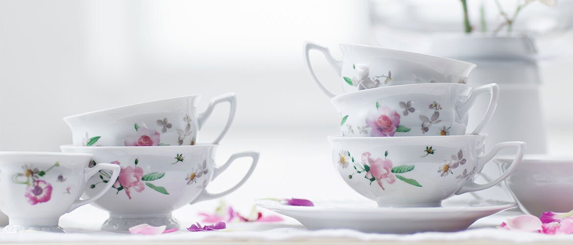 Die Maria-Serie Pink Rose mit ihrer sommerlichen Ausstrahlung bietet alle Teile für die tadellose Tee- und Kaffeetafel. Darüber hinaus verwandelt das Geschirr aber auch jeden Lunch oder ein Dinner in eine festliche Angelegenheit.