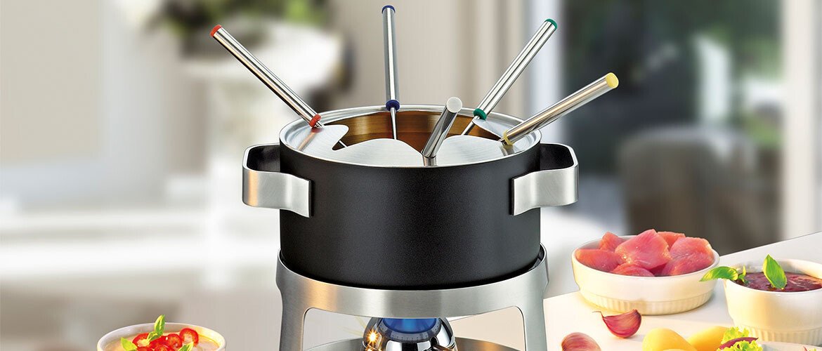Spring stellt sowohl Fondue-Sets für das klassische Käsefondue als auch für schmackhafte Fleischfondues sowie süße Schokoladenfondues her.