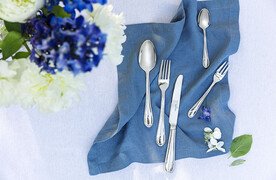 Der feminine Ausdruck des Villeroy-&-Boch-Mademoiselle-Bestecks beruht sowohl auf der Form als auch auf dem feinen Dekor. Eine weiche Linienführung lässt den nach vorn schmal taillierten Griff des Bestecks auslaufen, während das untere Ende breiter wird. So bietet es Platz für ein feines Fadendekor, das den Tafelmessern, Gabeln und Löffeln eine filigrane Eleganz verleiht. Der Stil ist von einer zeitlosen Romantik getragen, die eine gewisse jugendliche Frische nicht vermissen lässt.