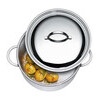Der niedrige Bratentopf ist Teil der Serie Cristal von Spring, der meistverkauften Edelstahl-Topfserie aus stark wärmeleitendem 5-Lagen-Material. Das Hochglanz-Kochgeschirr von Spring ist aus einem Stück mit nahtlos integriertem, abgerundetem Boden gefertigt und hat einen breiten Schüttrand.