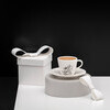 • die Untertasse wirkt wie eine Schiefertafel, auf der das Dekor ausdrucksstark zur Geltung kommt