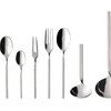 Das umfangreiche Tafelbesteck-Set der Serie NewWave von Villeroy & Boch glänzt formschön und stilsicher auf jedem Esstisch. Es ist von geraden Linien geprägt, die mit einem wellenartigen Schwung am Übergang zum Stiel aufgebrochen werden. So sind die Besteckteile optimal ausbalanciert und lassen sich leicht führen.